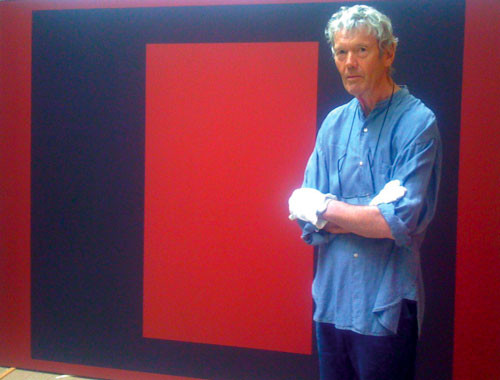 The works in this exhibition (his second in Galleri Riis) are all in large formats, from the period 2008-09. The character of the color is central in the paintings, which are dominated by red in this exhibition, and where the compositions borrow inspiration from Josef Alber’s Hommage to the Square and the late portals of Mark Rothko. The extremely finely worked monochrome surfaces vibrate in their layers, and create a space into which the beholder is drawn.