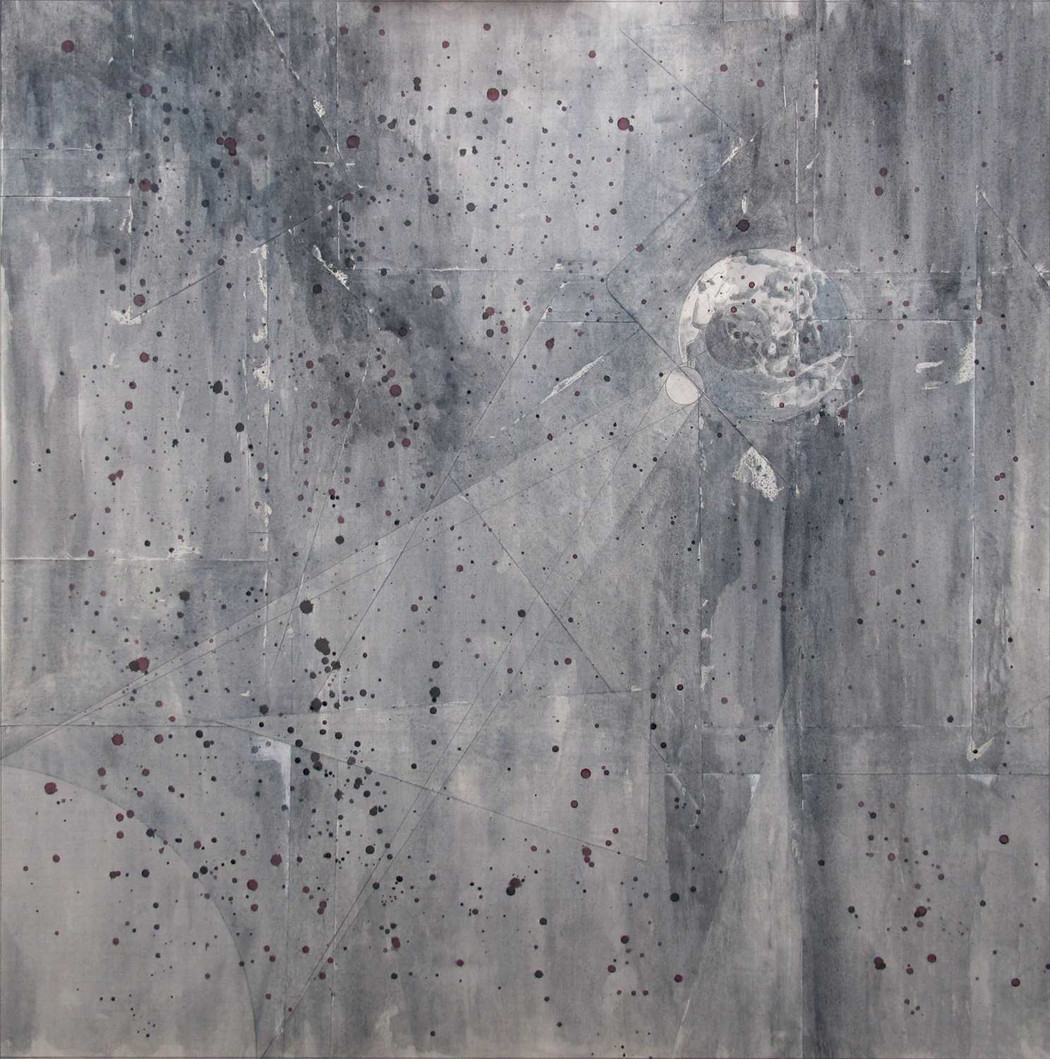 Artistic freedom also allows images of something as impossible as Laplace’s Demon. A mathematical idea noted by Pierre-Simon Laplace in 1814, an idea which isn’t perceptible. The idea of a knowledge, or hypothetical intellect, as something that have seen and sees, and will see everything in the universe. Ödlund demonstrates this with abstract painting.