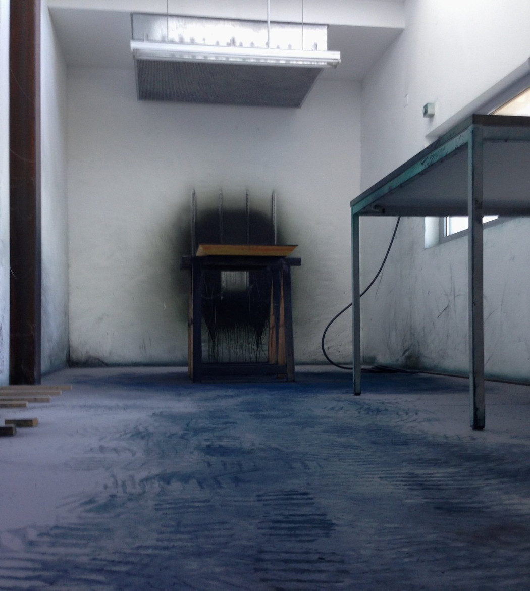 For his fourth exhibition with the gallery, Günter Umberg will install a constellation of individual paintings inside the confines of the largest wall in the exhibition space. Entitled PLAN No.7, this part of the show represents a continuum of his previous Territorium installations, one of which could be seen in his exhibition with Galleri Riis in 2011. In PLAN No. 7, the densely layered monochrome pigment paintings are positioned on and around constructed wooden panels, creating a powerful gravitational field in the space.