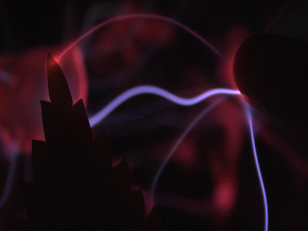 Pulses. Inspired by Nikola Tesla’s inert gas discharge tube and Seymon Kirlian’s aura photography, Christine Ödlund has produced a new video loop with sound, set in a space charged with visual and audible high voltage. In the film we see a pulse oscillating between a nettle and the artist’s finger. In her quest to bridge the communication gap between plants and humans, here they share the same circuit of electrical pulses and audio frequencies.