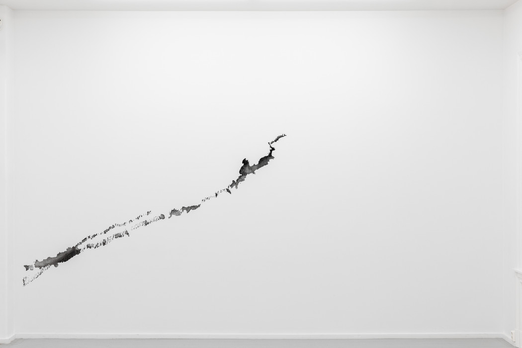 The wall drawings, executed with black crayons in close cooperation with assistants, play out their vibrant lines against the surfaces of the architecture and open a compelling dialogue with the eccentric compositions of the large scale tapestries, which were executed in collaboration with the late Benedikte Groth. Likewise, the spacial drawing of the recent sculptures adhere to the figures and signs of the new small drawings, evocative of ancient writings, referring back to Groth’s early works in this format more than two decades ago.