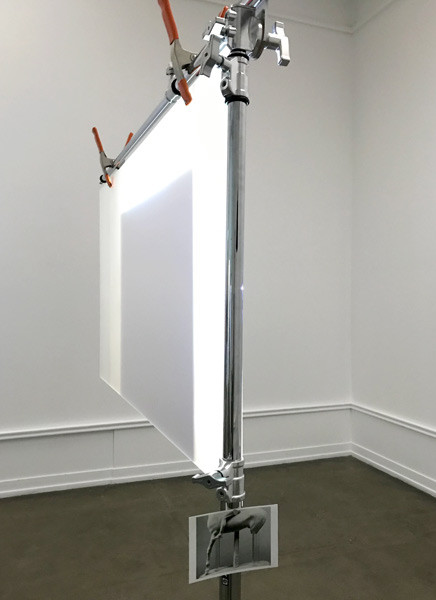 Mugaas has created an installation consisting of sculpture, video and postcards, elements that can act as subordinates in a larger whole; that can be followed from one constellation to another. Like the cardboard boxes that came from the publisher Primary Information with the book Siri Aurdal by Eline Mugaas, a project in which Mugaas took the role of support structure for another artist who lacked the framework that was needed to continue to be visible as an artist. The sculptures are support structures in themselves; bookshelves, pedestals. The process of making the sculptures has caused the underlying cardboard boxes to sag and yield, before the papier-mâché, glue and spackling paste made them harder and stronger. The shelves bulge, giving in to their own weight, but are at the same time strong enough to carry weight. Bookshelves are support structures for content. Mugaas’ bookshelves are empty.