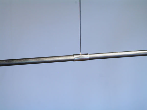 In this exhibition, Vigeland has gone further in her idiom and created sculptures that leave the base and instead relate to the walls, floors and ceiling; they are situated directly in and relate directly to the architecture. The materials are steel tubing, steel rods and piano wire with silver joints. The style is simple, elegant and delicate.