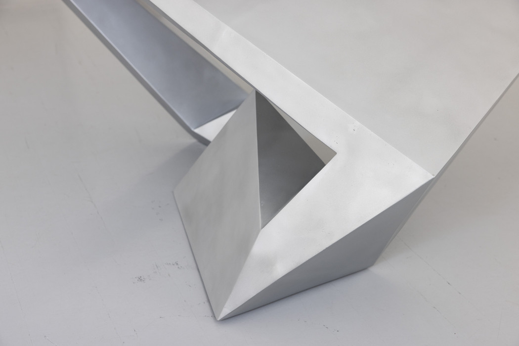 In Marie Buskov’s art, craftsmanship and digital tools come together in an alluring way. For our presentation at Chart 2025, she will create a new cast aluminum sculpture to be placed on the floor in dialogue with Per Berntsen’s photographs. The sculpture has been drawn by hand and with computer-assisted design tools, sculpted into folded and sharp-edged 3D volumes. It is subsequently cast in aluminum and presented with a smooth raw finish, exposing the metal with marks from the manufacturing. The reflections of light on the surface animates the sculpture and exudes a mystic aura, as if it has travelled from another time and place. Buskov has always been interested in architecture and its surroundings, and lately she has investigated this further, with a focus on structures and rhythms, both visible and hidden: