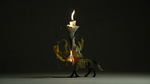 The exhibition is comprised of new drawings executed with pen and marker on paper; longlasting mental dives which the artist describes as a visual manifestations of glossolalia (speaking in tongues). The series is titled “Pandemonium." “Hubbub" are neo-vitalistic plaster sculptures in which the artist, by deconstructing, twisting and wringing the constantly growing material, approaches a plastic imprint of an ongoing process of reflection. “Panacea" is a series of reworked photographs dealing with sexual sublimination, with psychological references, such as Freud’s penis envy, Jung’s anima/animus projection, and Lacan’s law of the father. “Mellow My Mind" and “Tutorial" are, respectively, a video work and a bronze sculpture with references to the centaur Nessus. Nessus was, according to the myths, instrumental in the education of Hercules. The title, “Tutorial", refers to a well-known lesson – the danger of burning one’s candle in both ends.